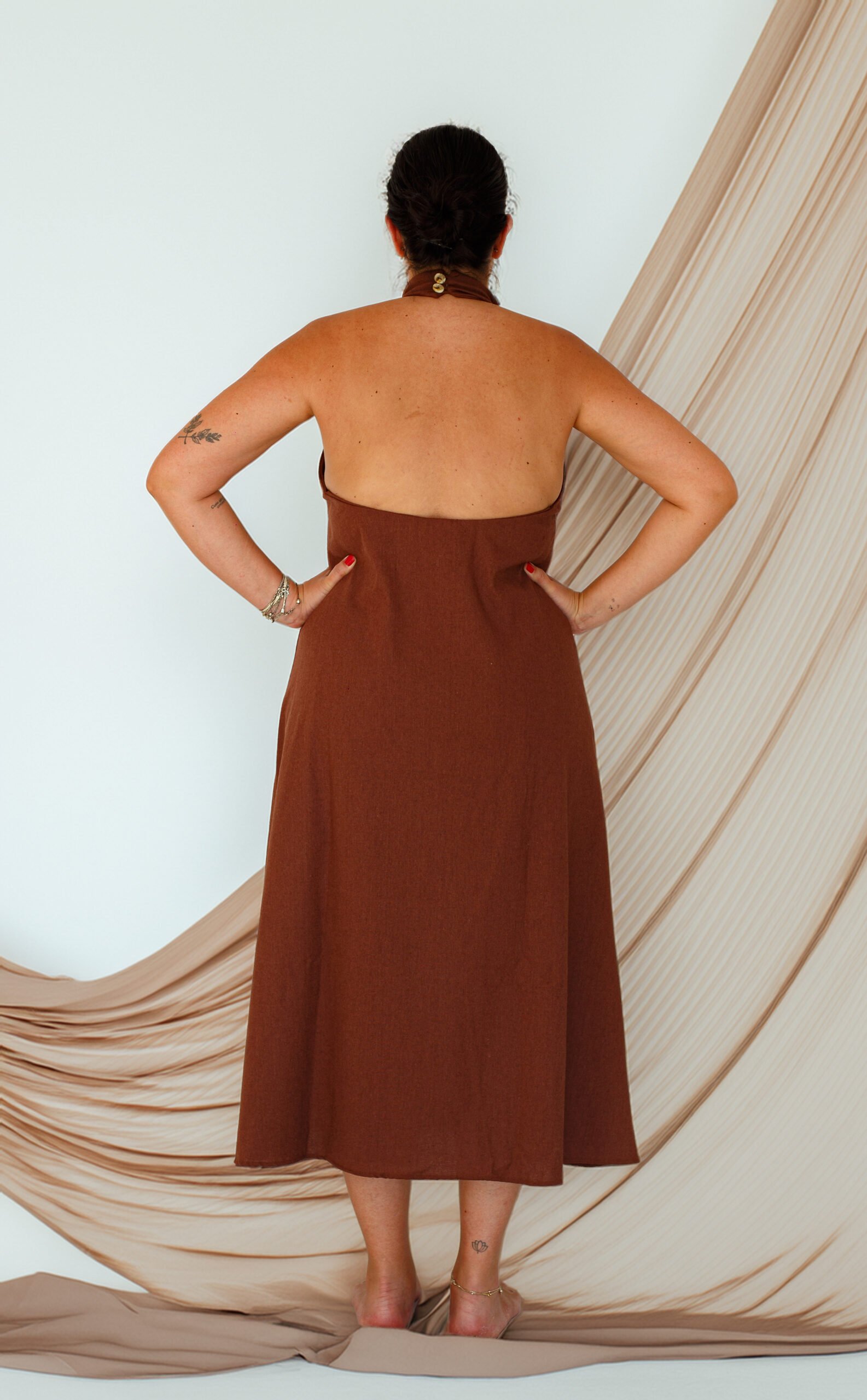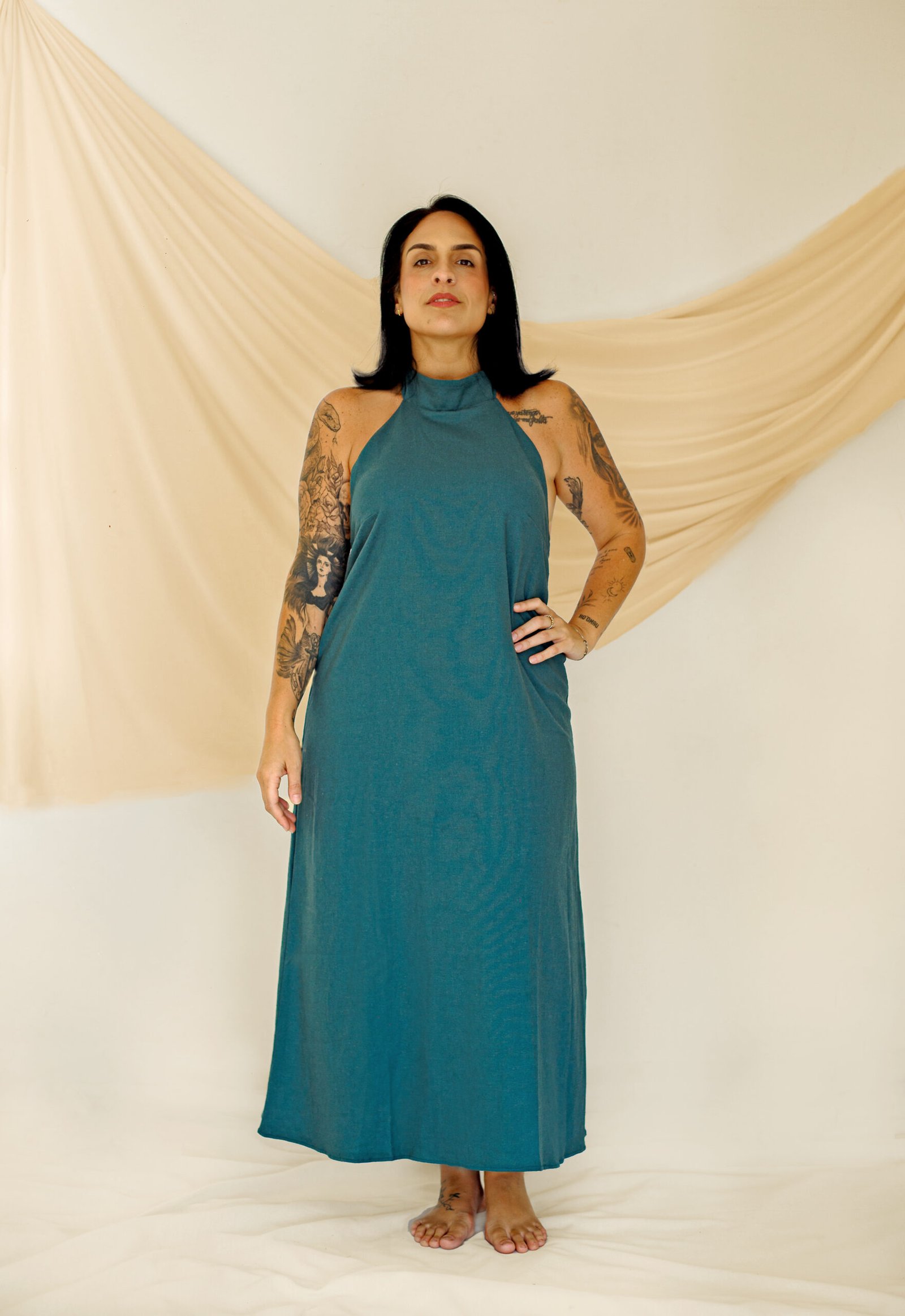 Uma peça leve, fresca, chique e muito moderna. Nossa vestido é a peça chave para um verão descomplicado. Com uma modelagem elegante e sensual, possui um lindo decote nas costas. Feito em tecido 55% linho e 45% viscose.